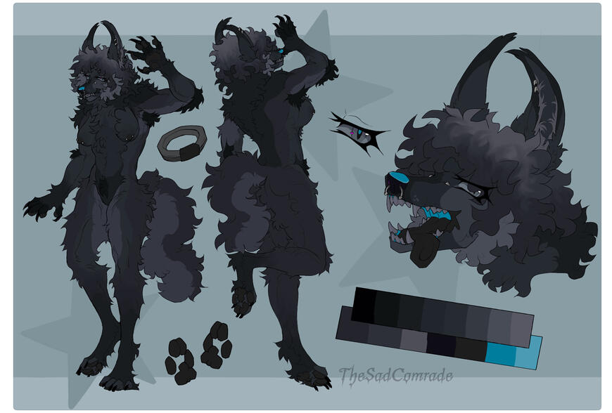 (Fully body + alt with clothes, head shot (rendered option : 20$) , mini full, accessories, pallet, with mouth + teeth , and paw pallet)Custom Ref Sheet : 55$